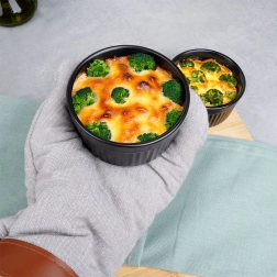Lav perfekt crème brûlée, soufflé eller en portion gratinerede grøntsager. Det kompakte volumen på 260 ml er ideelt til portionskontrol og jævn gennemstegning.
