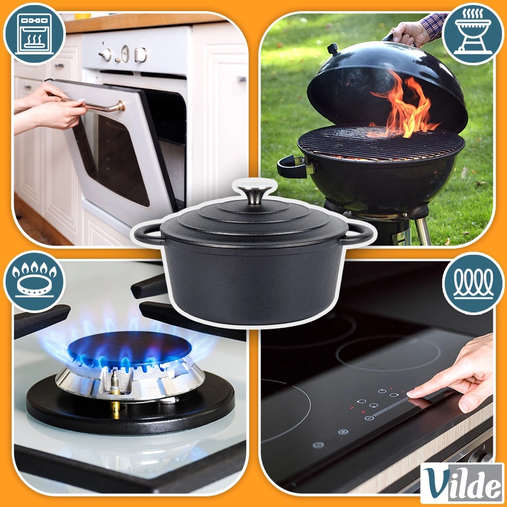Kompatibel med alle typer komfurer – gas, elektrisk, glaskeramisk, halogen og induktion. Den kan også bruges på grillen eller direkte over åben ild. Det tætsluttende låg med håndtag i rustfrit stål hjælper med at bevare fugt og smag inde i retten.