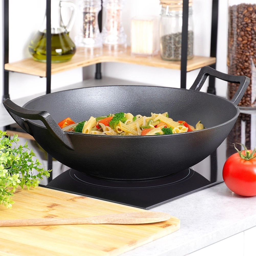 Støbejern er et gennemprøvet materiale til woks – det holder høj varme, som du behøver til hurtig sautering, stegning og gratinering. Denne wokpande med en diameter på 36 cm har en dyb, rummelig krop til store portioner pasta, grøntsager, kød og retter inspireret af det asiatiske køkken. Takket være modstandsdygtigheden over for høje temperaturer kan den trygt bruges på komfur, på grill og i ovn.