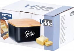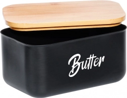 Denne praktiske smørdåse kombinerer moderne look med funktionalitet – sortlakeret stål med hvidt tryk “Butter” og naturlig bambus skaber et tidløst tilbehør til ethvert køkken. Takket være låget forbliver smørret beskyttet, friskt og aromastabilt, og er altid klar til servering.