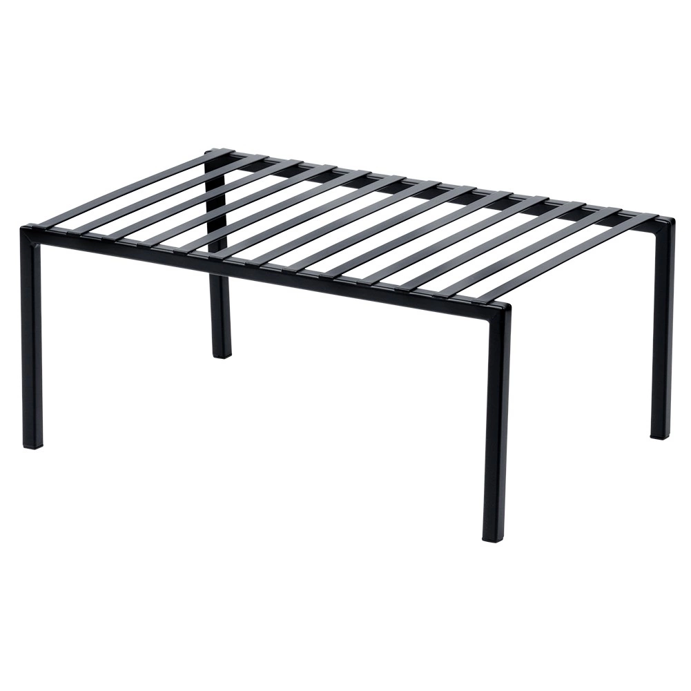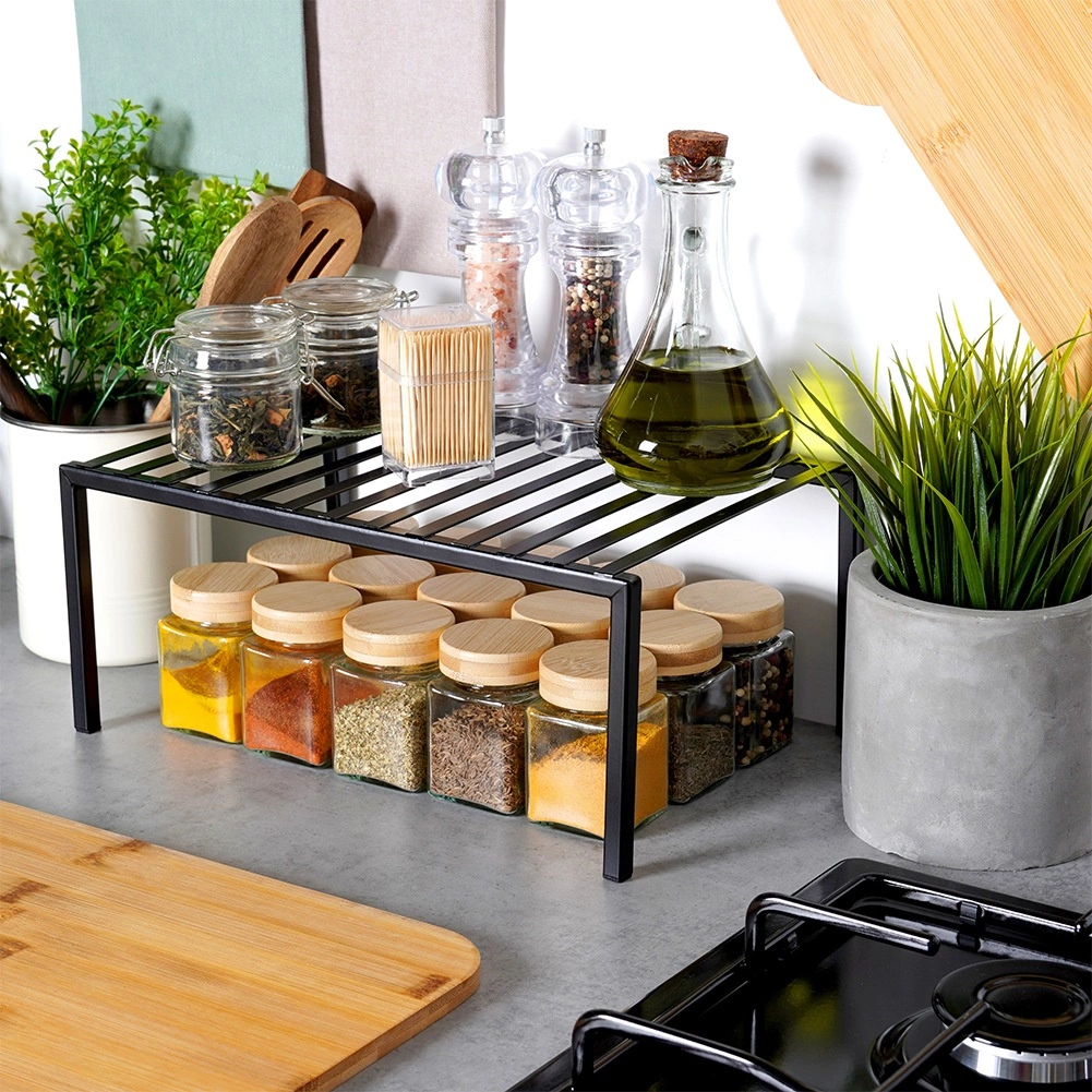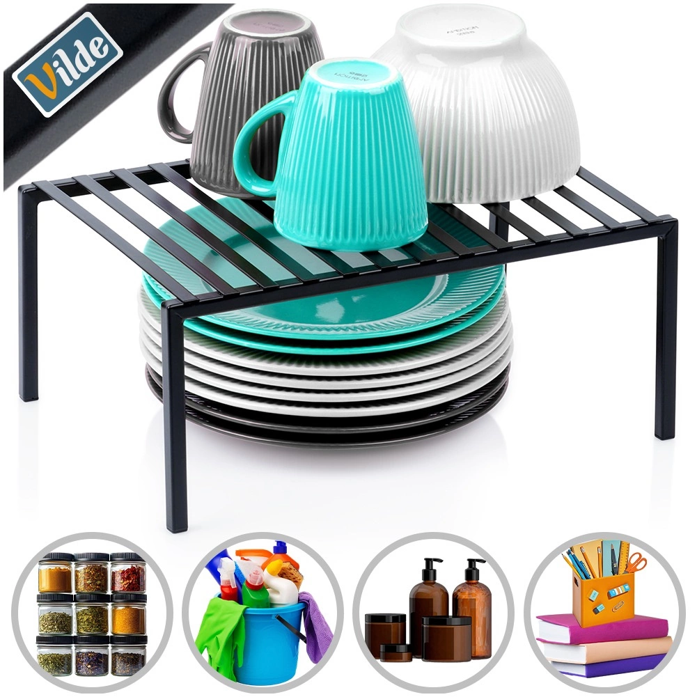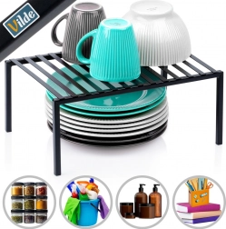 Denne alsidige sorte metalhylde opdeler effektivt højden i skabet eller pladsen på køkkenbordet i to etager, så du får mere opbevaringsplads uden ekstra indgreb. Takket være den solide udførelse er den stabil og pålidelig til daglig brug.