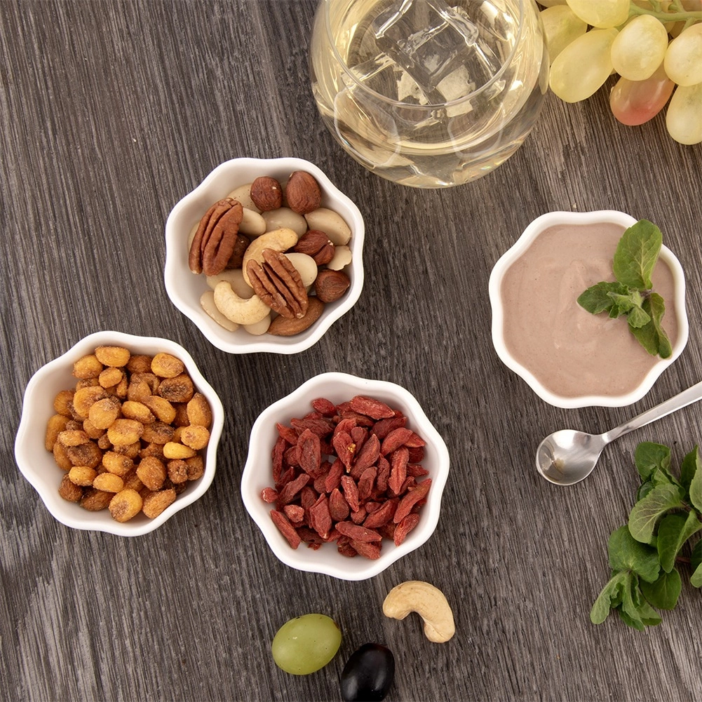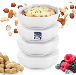 Sæt med fire alsidige skåle af kvalitetsporcelæn i ren hvid løfter enhver servering. De kompakte mål (7,5 × 6 × 2,5 cm) og kapaciteten på 50 ml er ideelle til små portioner af saucer, dips, snacks eller desserter. Den blanke finish og den diskret bølgede kant virker elegant og gør det samtidig muligt at stable stabilt for at spare plads.