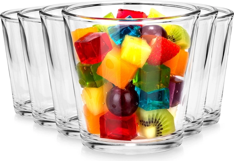 Server panna cotta, tiramisu, budding, frugtsalater og små forretter med stil. De alsidige glas på 180 ml passer til hyggestunder derhjemme, bryllupper, catering og børnefester. Det klare glas lader farver, tekstur og lag i dine desserter træde frem.