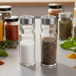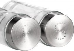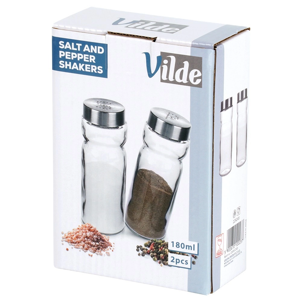 Opdag det praktiske VILDE-sæt – salt- og peberstrøer af kvalitets, tykt glas med metallåg i rustfri look. Takket være det gennemsigtige korpus kan du altid se mængden af krydderi og fylde op i tide. Doseringshullerne i låget hjælper med jævn strøning og forhindrer oversaltning eller for kraftig krydring.