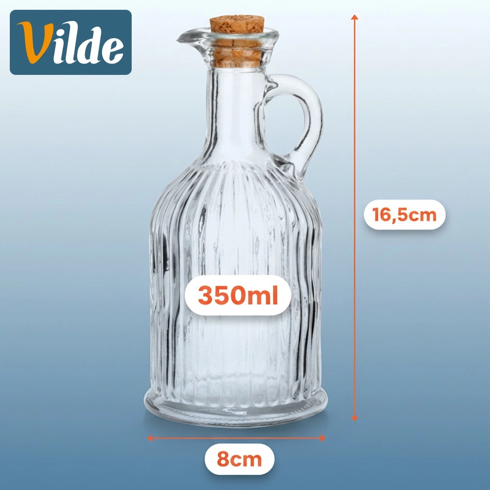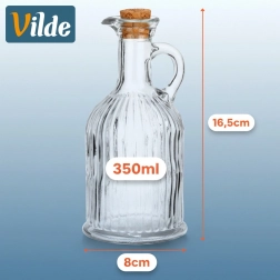 Denne glasflaske er ideel til stilfuld og præcis dosering af olie eller eddike. Klart, kvalitets- og kraftigt glas med vertikal rifling sikrer et sikkert greb og fremhæver elegant farven og strukturen af indholdet – perfekt til smagsatte olier med urter, hvidløg eller chili.