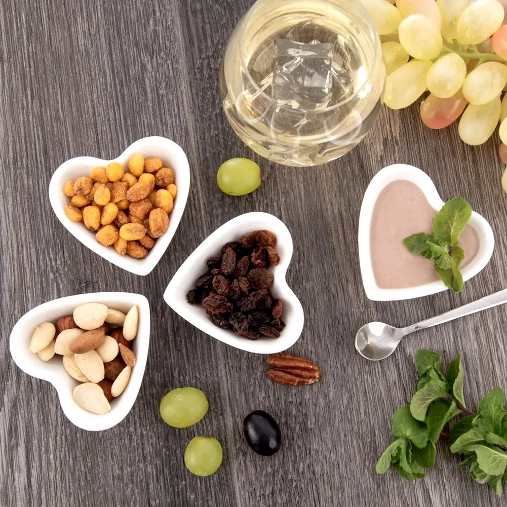 Giv dit bord et strejf af elegance med disse porcelænsskåle i hjerteform. De er perfekte til små snacks, tørret frugt, nødder, saucer, dips og små desserter. Takket være de kompakte mål og det stabelbare design sparer de plads og virker samtidig dekorative på ethvert bord.