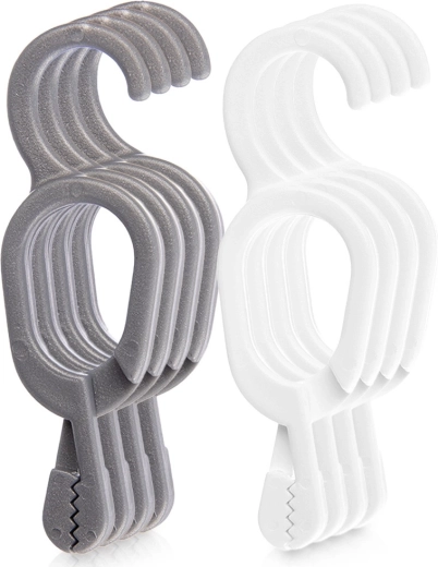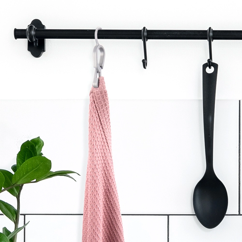 Hold orden i hjemmet med praktiske clips til håndklæder og viskestykker. Takket være clipsmekanismen fastgør du hurtigt og nemt enhver tekstil og hænger den på den integrerede krog. Holdbare materialer i grå og hvid sikrer lang levetid og et elegant look i både køkken og badeværelse.