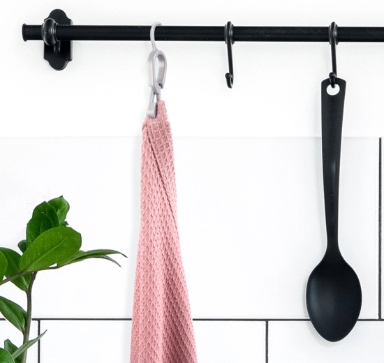 Clipsene er ideelle til tekstiler uden påsyet strop og hjælper dig med at hænge dem praktisk dér, hvor du har brug for dem. De to farvetoner gør det desuden let at skelne mellem husstandens håndklæder.