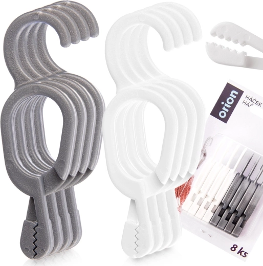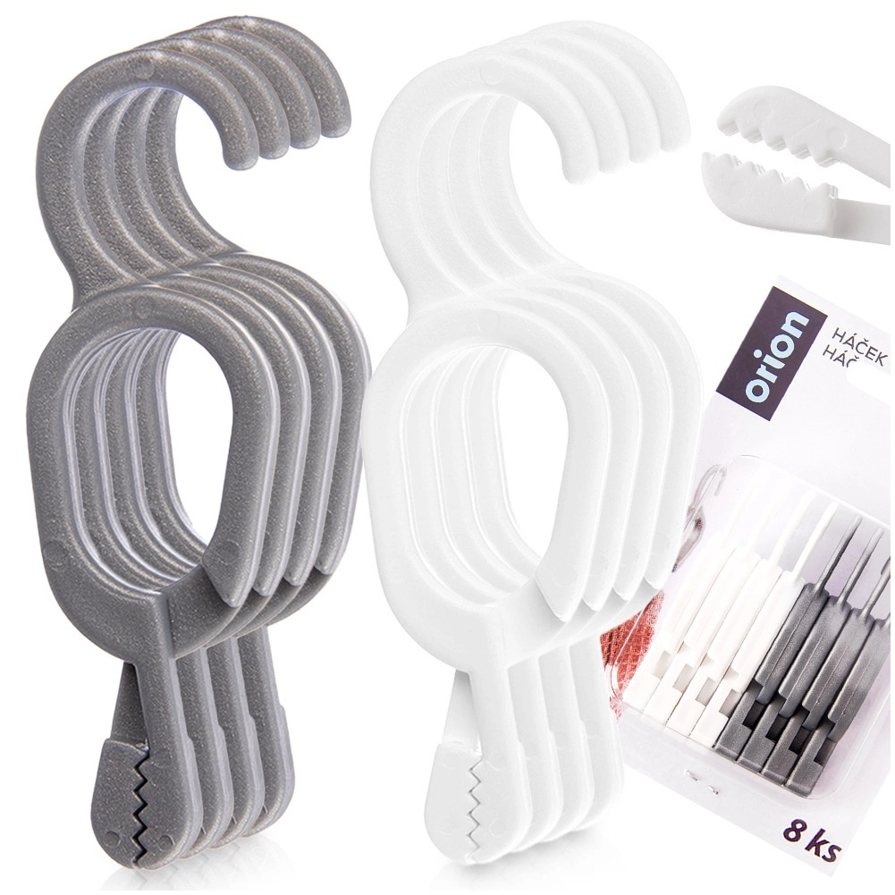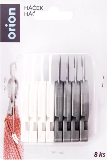 Praktisk sæt med 8 clips til håndklæder og viskestykker gør det let at hænge tekstiler uden strop. Robust udførelse, hurtig fastgørelse med clips og krog til nem ophængning i køkken, badeværelse eller bryggers. To neutrale nuancer (grå og hvid) passer perfekt til moderne interiører. Originalt produkt fra det tjekkiske brand ORION.