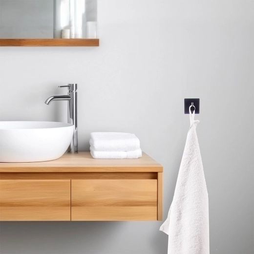 Opdag en elegant og funktionel løsning til ophængning af hverdagens tilbehør. De selvklæbende RADKA-kroge i sort monteres med en robust klæbestrimmel, som sikrer fast montering uden boring. Det minimalistiske firkantede design passer perfekt ind i moderne interiører.