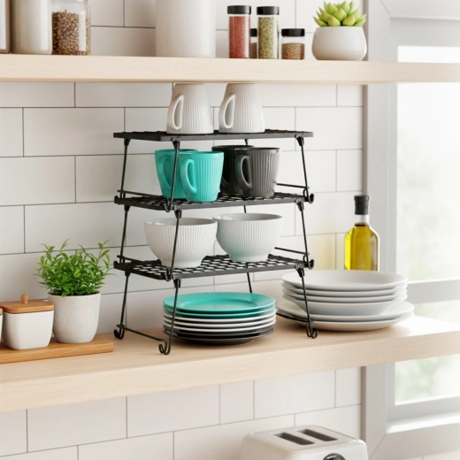 Den egner sig ikke kun til køkkenet, men også til viktualierum, badeværelsesskabe eller kontoret. Hylden er solid og stabil, og ved behov kan den klappes fladt sammen og opbevares nemt. Det minimalistiske design er let at kombinere med forskellige indretningsstile.