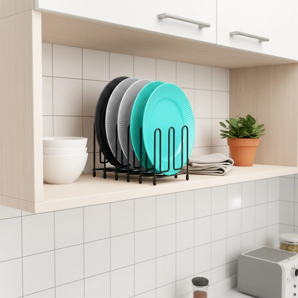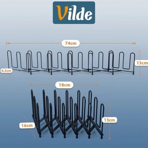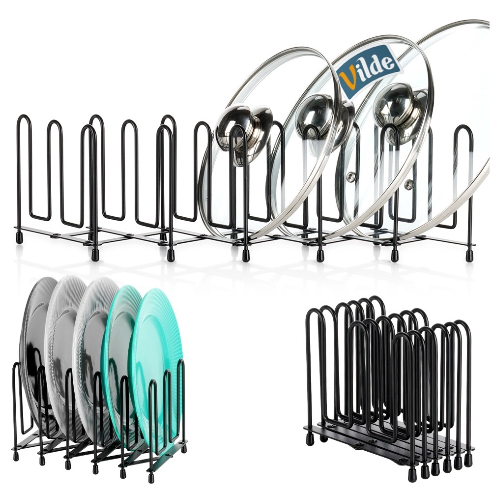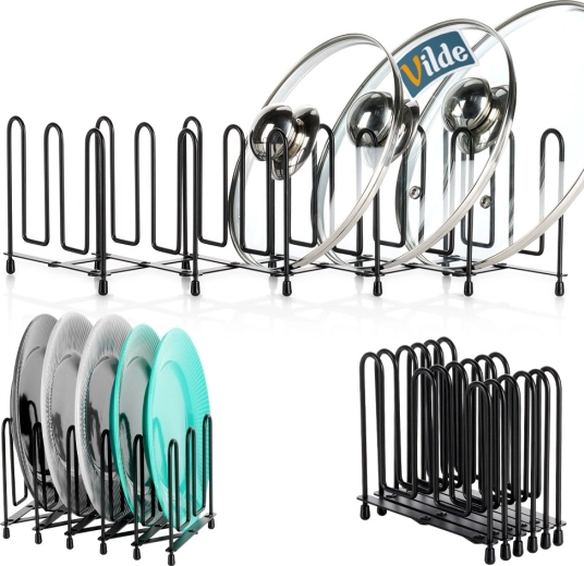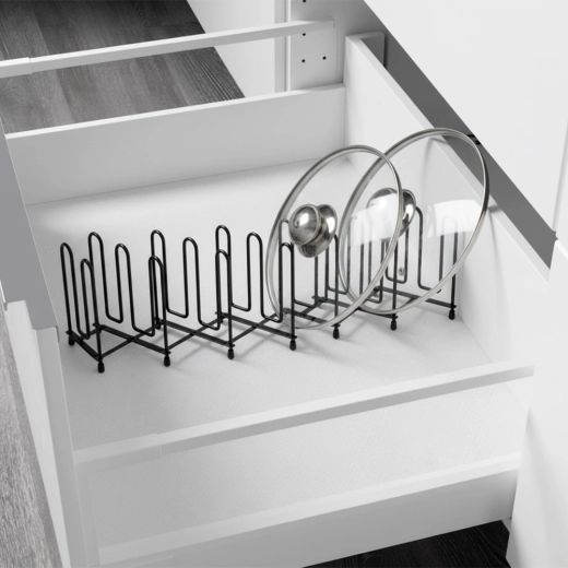 Hold orden i køkkenet med en alsidig organizer til låg, tallerkener og skærebrætter. Holderen tilpasser sig nemt både plads og indhold – fra 8 cm op til 74 cm. Ideel til køkkenbordet, i skabet eller i dybe skuffer. Den lodrette opbevaring giver bedre overblik, hurtig adgang og beskytter kanter og overflader.