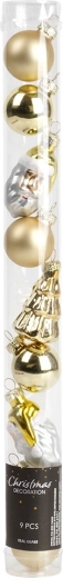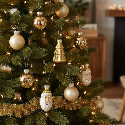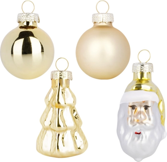 Skab en unik juleatmosfære med gyldent pynt, der giver din juleudsmykning et tidløst skær. Sættet kombinerer forskellige former og overflader, så du nemt opnår en harmonisk og effektfuld udsmykning på træet, i kranse og guirlander.