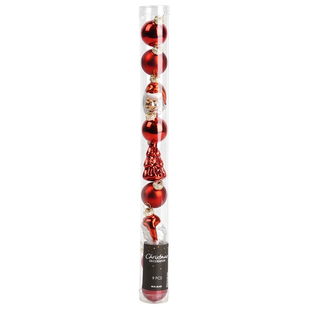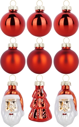 Elegant sæt røde juleornamenter, der giver din udsmykning klassisk glans og en magisk atmosfære. Indeholder 9 stk. ubrudelige pynt i kvalitetsplast – 6× kugle diameter 3 cm, 2× SANTA-figur 5 cm og 1× træfigur 5 cm. Kombinationen af blank og mat finish skaber en effektfuld komposition og er sikker for børn og kæledyr.