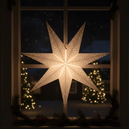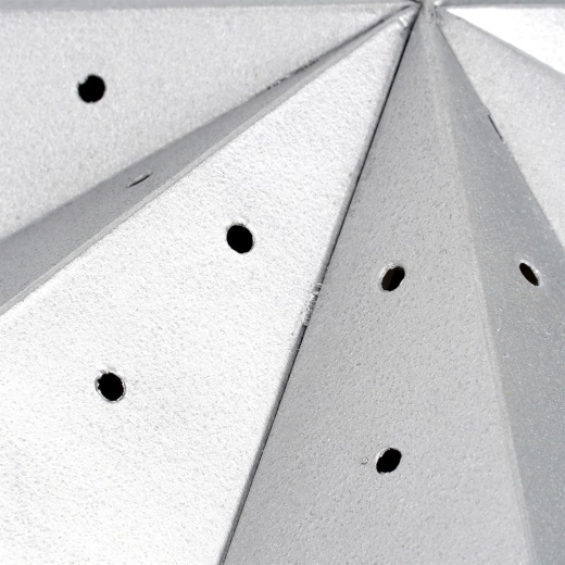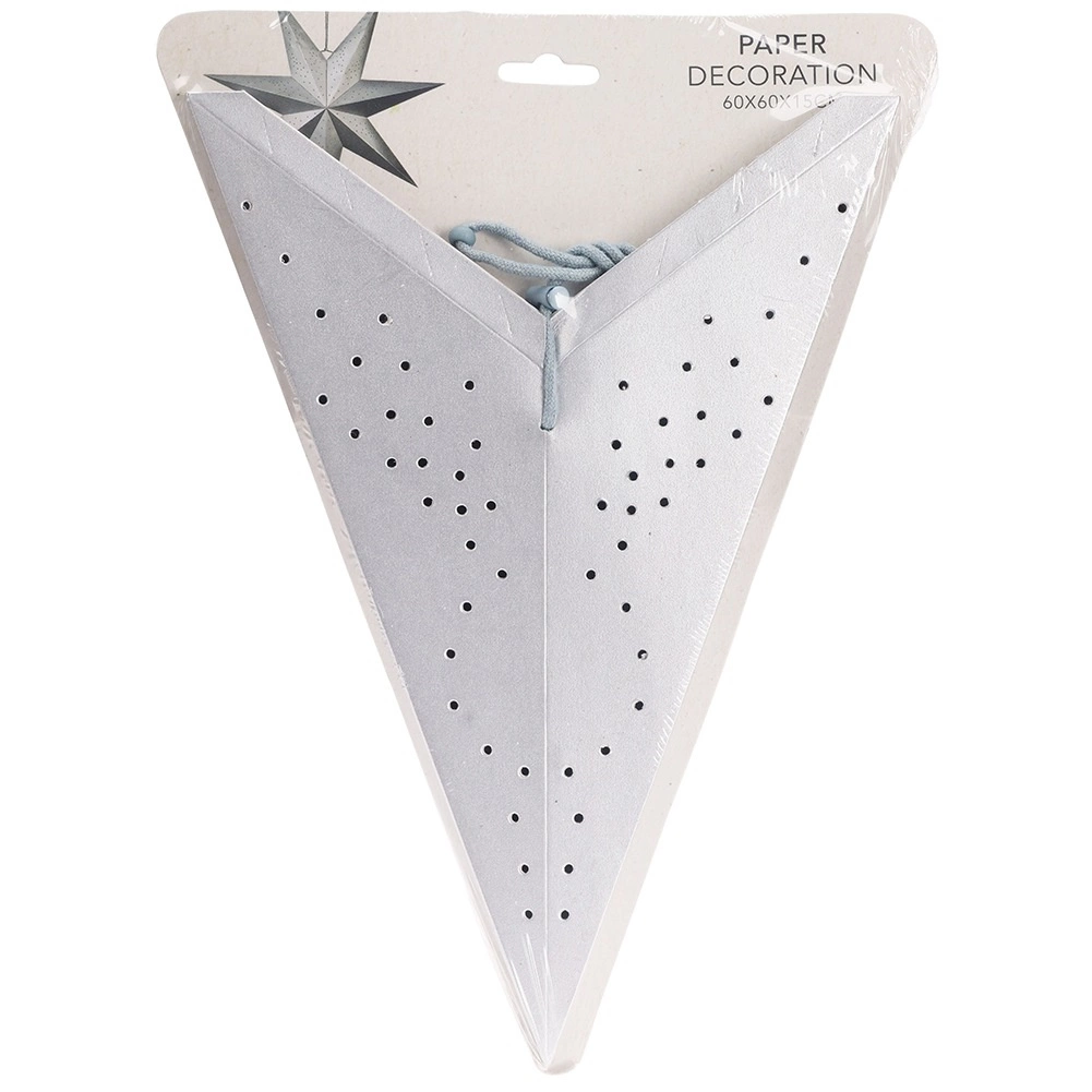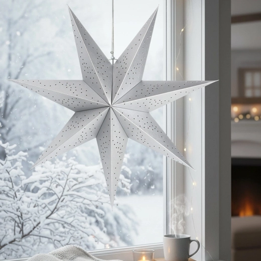 Denne store, sølvfarvede papirstjerne med ajour (perforeret) motiv virker let og luftig og tilfører straks rummet en både festlig og hverdagslig charme. Syvtakket form og 3D-konstruktion sikrer et effektfuldt udtryk fra alle sider. Takket være den lave vægt hænger du den nemt i vinduet, på væggen eller fra loftet.
