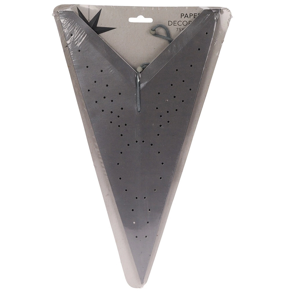 Elegant, stor papirstjerne med en diameter på 75 cm, med syv spidser og ajour-perforeret mønster. Takket være den lette konstruktion er den nem at hænge op i vinduet, på væggen eller i loftet. Fremstillet af kvalitetspapir i grå med FSC-certificering – skånsom mod naturen. Ideel som vinter- og helårsdekoration, tager sig flot ud sammen med LED-lyskæder (medfølger ikke).
