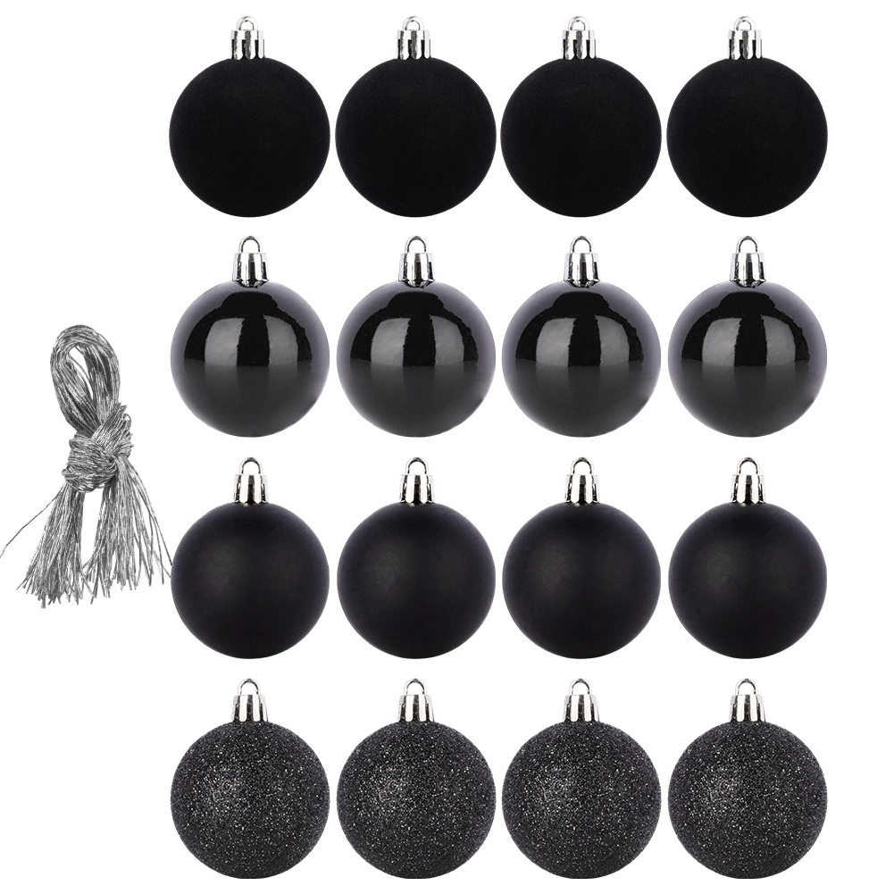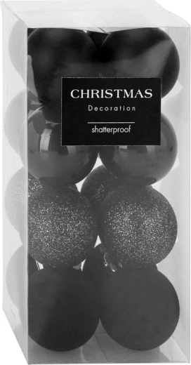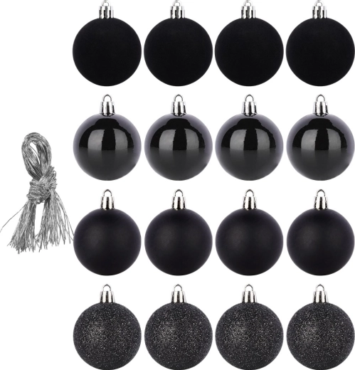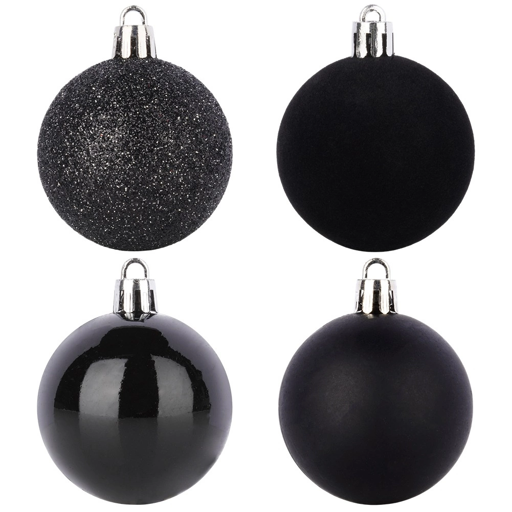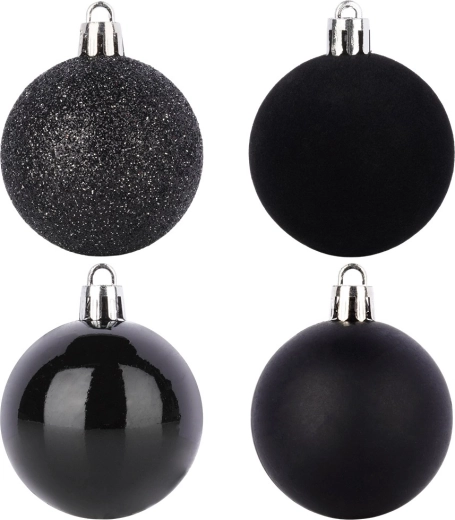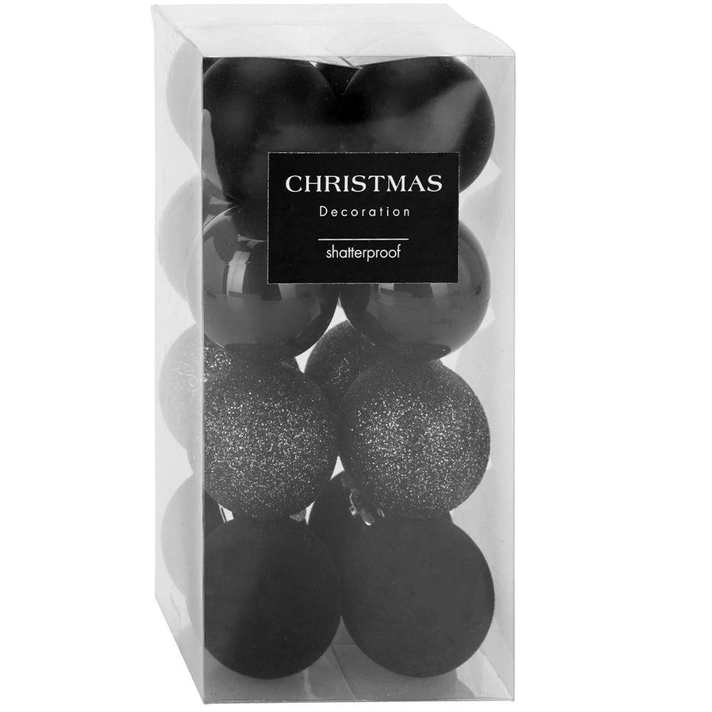 Skab en unik, festlig stemning derhjemme med et sæt kvalitetsornamenter i elegant sort, der ikke går i stykker. Takket være mixet af overflader – mat, blank, glitter og velour – får du et moderne og imponerende udtryk på juletræet og i øvrige dekorationer.