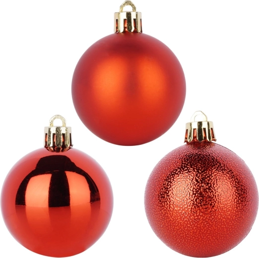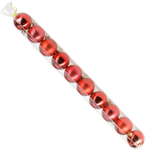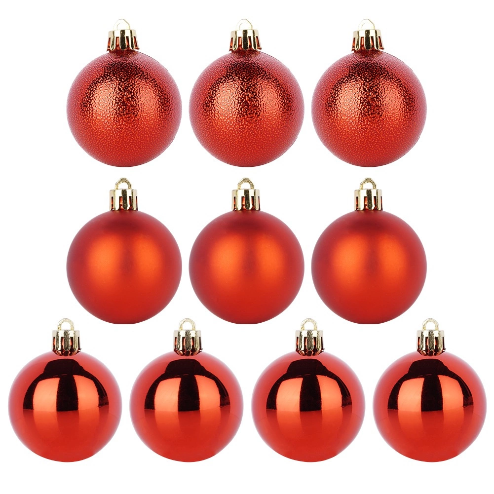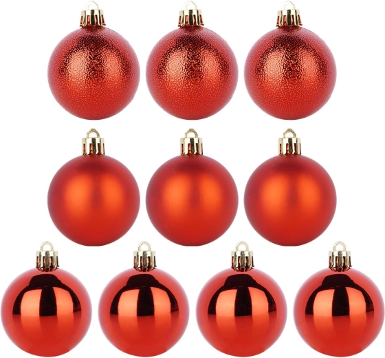 Sæt med 10 røde julekugler giver din juleudsmykning en klassisk glans og en magisk atmosfære. Indeholder matte, blanke og strukturerede ornamenter med en diameter på 5 cm, som flot fuldender både træ, kranse og festlige arrangementer. Fremstillet af uknuseligt materiale – sikkert til hjem med børn og kæledyr.