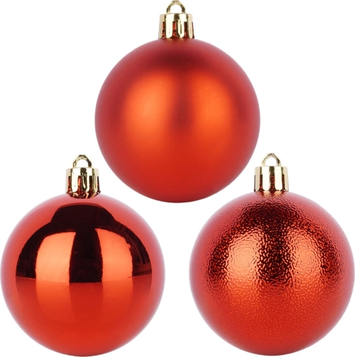 Giv din udsmykning et løft med et alsidigt sæt røde kugler, der passer perfekt til juletræ, kranse, guirlander og festlige dekorationer i hele hjemmet. Kombinationen af tre overflader – mat, blank og med elegant præget struktur – skaber visuel variation og harmoni.