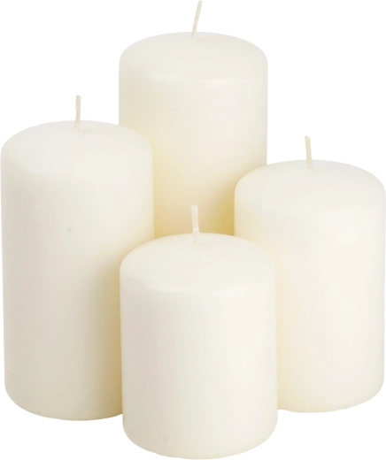 Elegant sæt med fire klassiske cylindriske stearinlys i knækket hvid, der byder på rent design, alsidig anvendelse og lang brændetid. Alle lys er uden duft, ideelle til indretning, festbordet og lanterner. Samme diameter og forskellige højder muliggør stilfuld dekoration i både moderne og traditionelle rum.