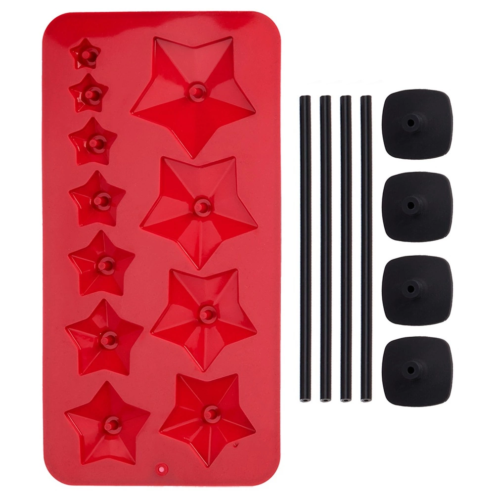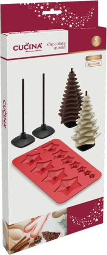 Lav imponerende chokoladetræer og praliner derhjemme med dette 9-delte silikonesæt. Formen måler 27 × 14 cm og giver mulighed for at lave 11 chokolader formet som stjerner, som nemt kan træs på de medfølgende pinde og samles til et chokoladetræ. Materialet er varmeresistent op til 230 °C, egnet til opvaskemaskine, fryser og mikroovn.