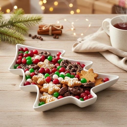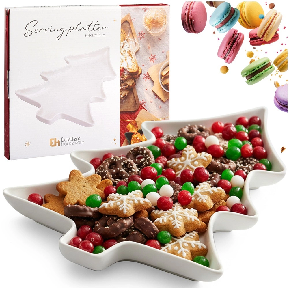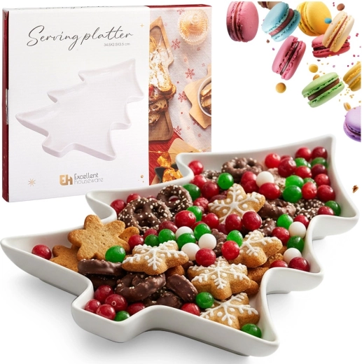 - Stilfuldt, festligt design: original juletræsform som både dekoration og funktionelt serveringsfad.