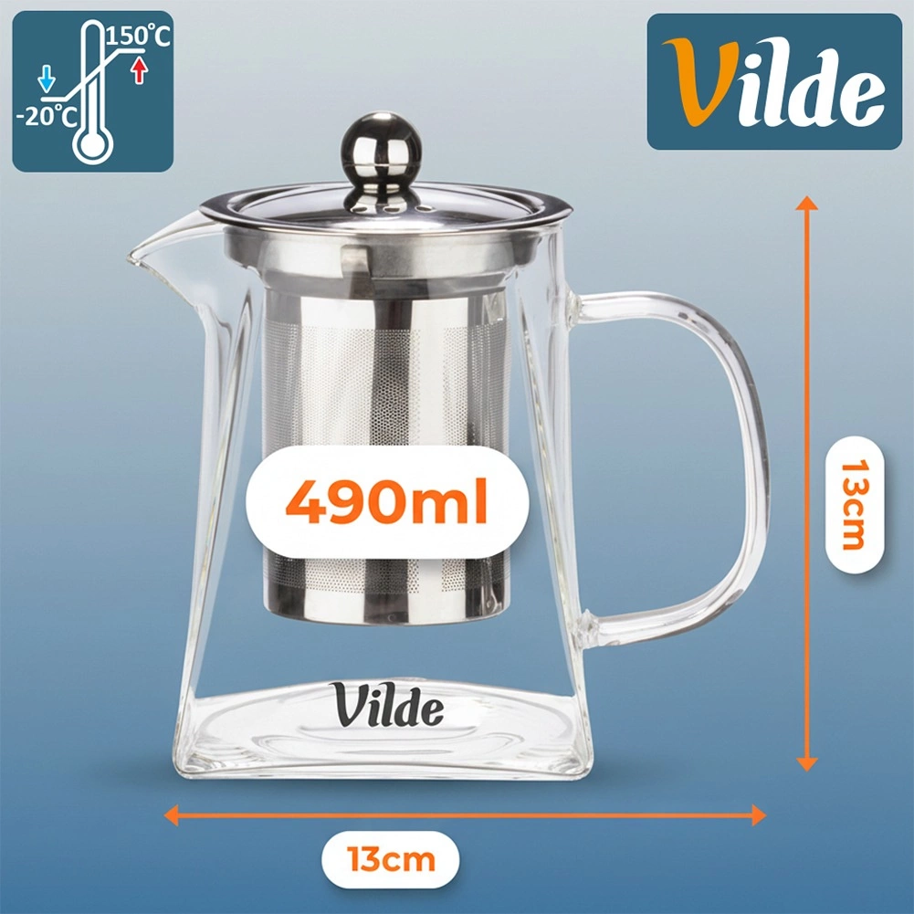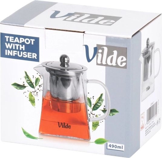 Elegant glaskande med integreret filter på 490 ml til nem tilberedning af te, urter og infusioner uden bundfald. Fremstillet af holdbart borosilikatglas med filter og låg i rustfrit stål, giver en ren og fyldig smag. Takket være den effektfulde form og firkantede base passer den perfekt i både hjemmet og på kontoret. Tåler temperaturer fra -20 °C til 150 °C.