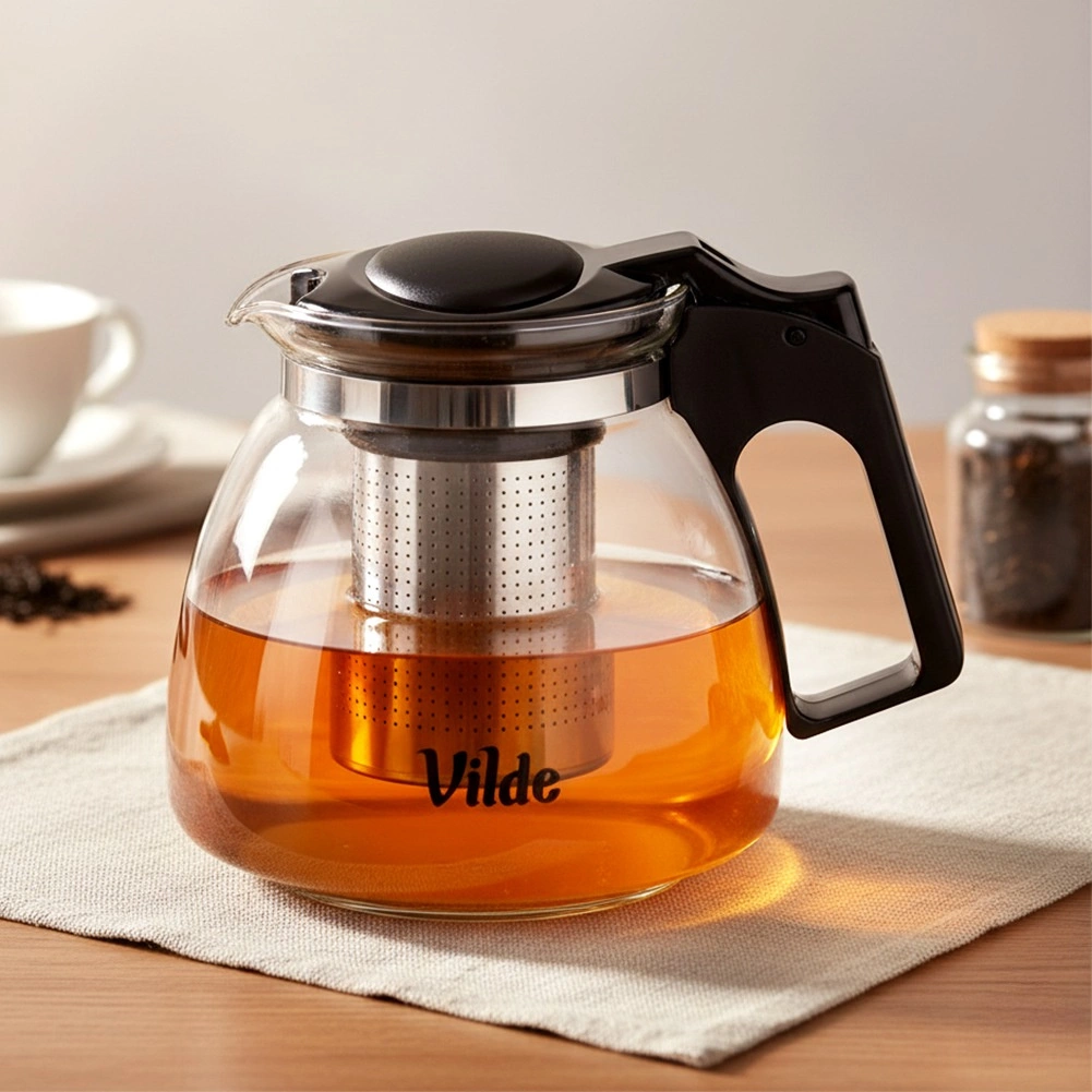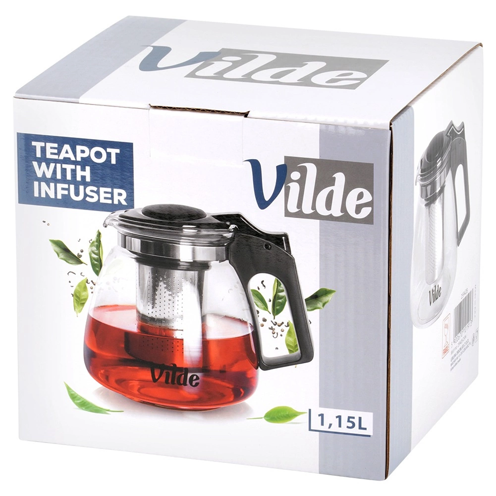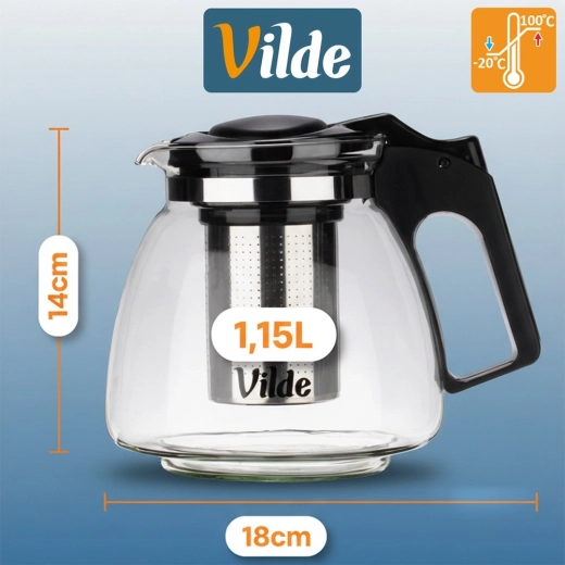 Praktisk glaskande med aftageligt filter i rustfrit stål til nem udtrækning af te og urter. Takket være kapaciteten på 1,15 l, det varmebestandige borosilikatglas og det behagelige håndtag er den ideel til daglig brug. Modstandsdygtig over for temperaturer fra -20 °C til +100 °C, fint filter for en klar infusion uden bundfald og nem vedligeholdelse vil glæde enhver teelsker.