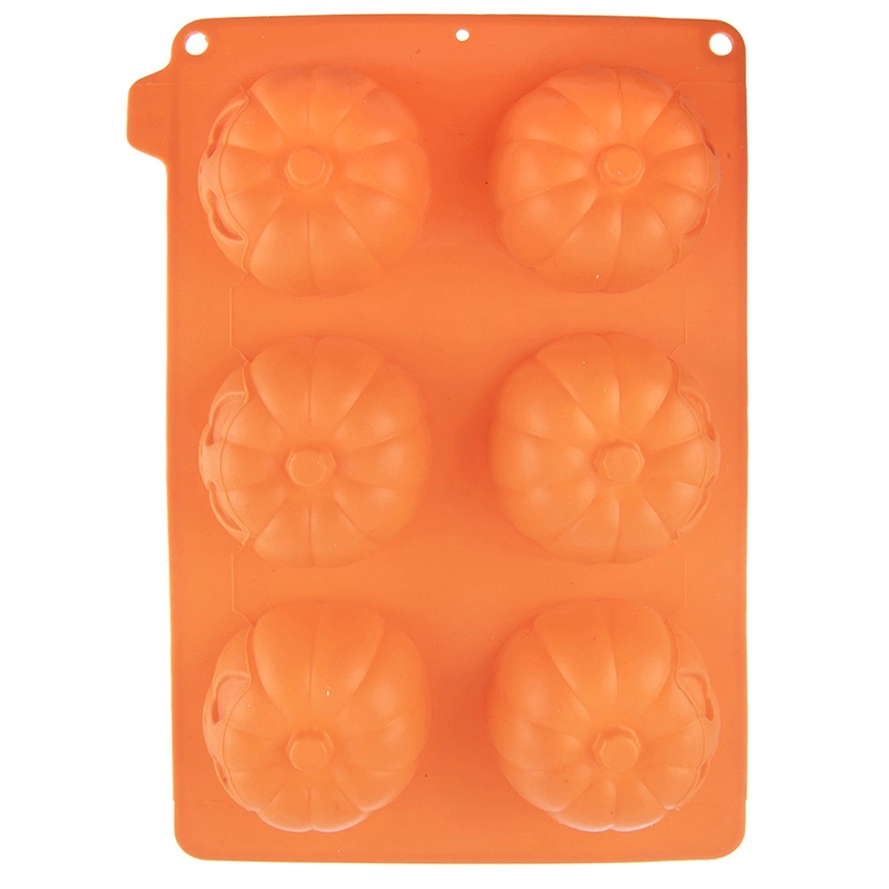 Praktisk silikoneform til bagning i form af et halloween-græskar til 6 stk. muffins eller småkager. Med mål på 27 × 18 × 4 cm og en huldiameter på ca. 7 cm sikrer den jævn bagning, non-stick overflade og nem udtagning. Velegnet til ovn, mikroovn og opvaskemaskine, temperaturbestandig fra -40 °C til +220 °C.