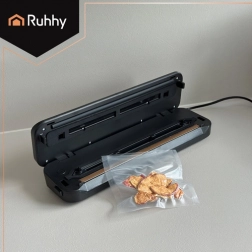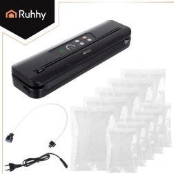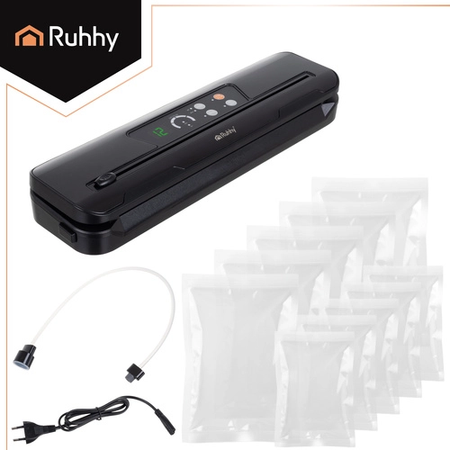 RUHHY vakuumposesvejser gør hjemmeemballering lettere, reducerer madspild og forlænger friskheden af kød, ost, grøntsager og marinerede retter. Den stærke vakuumpumpe på 80 kPa med 110 W effekt og et flow på 9 l/min skaber professionelle, lufttætte svejsninger på få sekunder. Overskuelige LED-indikatorer og enkel betjening sikrer et pålideligt resultat hver gang.