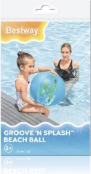 BESTWAY strandbold med en diameter på 51 cm giver masser af sommersjov til vandlege og udendørs aktiviteter. Takket være den stærke PVC-film er den holdbar og samtidig meget let. Når den er tømt for luft, fylder den minimalt, så du nemt kan tage den med på ferie, til poolen eller på picnic.