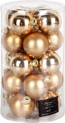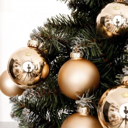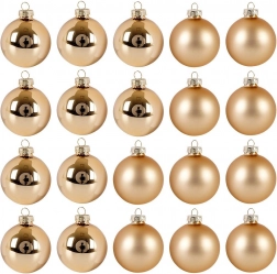 Pift juletræet op med et stilfuldt sæt gyldne glaskugler, der virker tidløse og elegante. Med en kombination af 10 blanke og 10 matte kugler skaber du en harmonisk kontrast og smukke lysreflekser. Glas af høj kvalitet understreger det premium udtryk i hele udsmykningen.