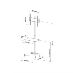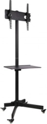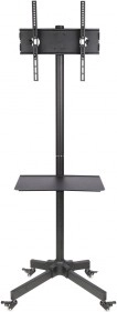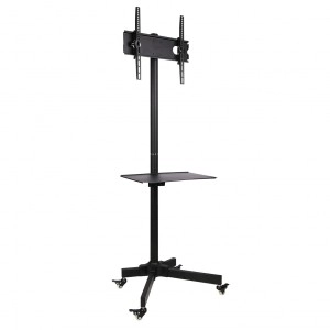 Det mobile TV-stativ S-09 gør det sikkert og bekvemt at flytte dit TV eller display mellem rum. Den robuste metalkonstruktion, kvalitetslakering og gennemtænkte detaljer garanterer lang levetid og tryghed i daglig brug. Den midterste hylde giver plads til en afspiller, set-top-boks eller videokonferenceenhed.