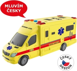 Denne detaljerede ambulance i dansk design for den præhospitale indsats giver masser af action og sjov. Ved tryk på knappen aktiveres realistiske meddelelser fra dispatch og besætning, suppleret af en funktionsdygtig rotorblink med lys og lydeffekter. Takket være friløbsmekanismen kører bilen let hen over gulvet uden at skulle skubbes hele tiden.