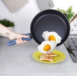 Den keramiske nonstick-base uden PFOA og PTFE sikrer nem frigivelse af maden og hurtig rengøring. Det ergonomiske håndtag med varmebestandig silikonebelægning ligger godt i hånden, mens det massive støbte pandekorpus akkumulerer varme effektivt.