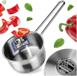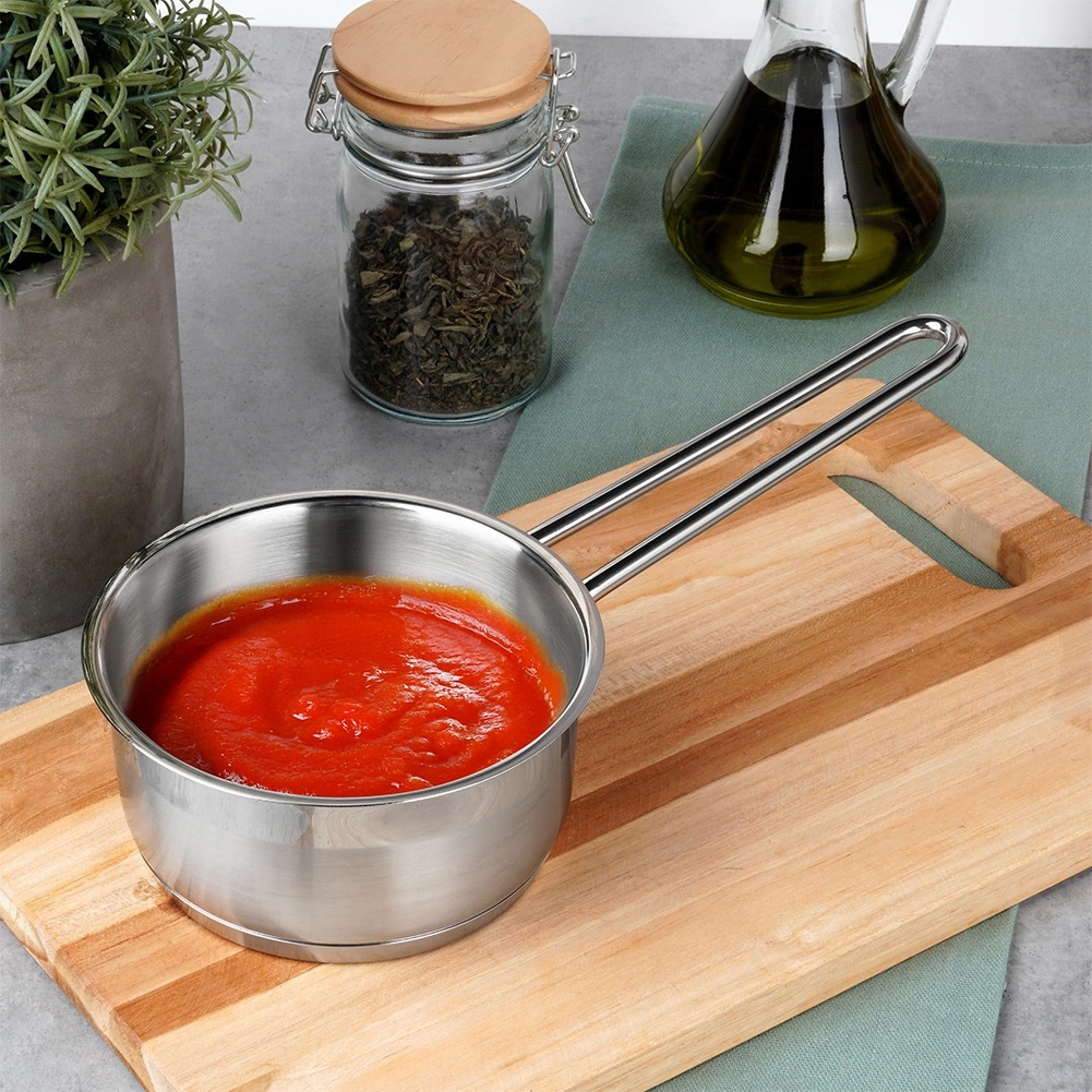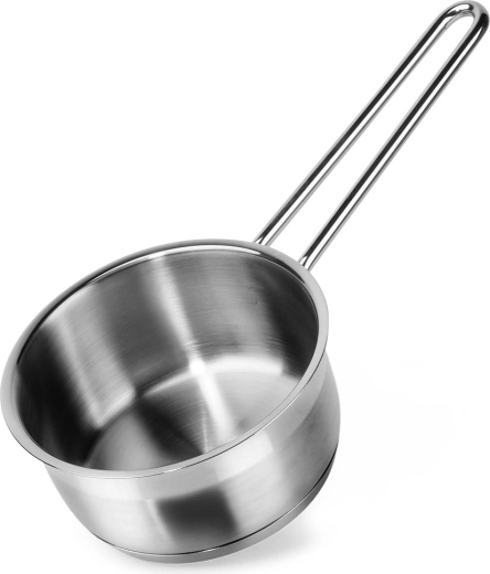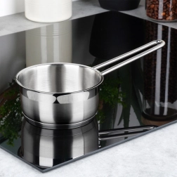 Den praktiske kasserolle i kvalitets rustfrit stål i elegant sølvfarve imponerer med sin holdbarhed og alsidighed. Takket være de kompakte mål er den perfekt til opvarmning af mælk, saucer eller tilbehør og passer fremragende i mindre køkkener.