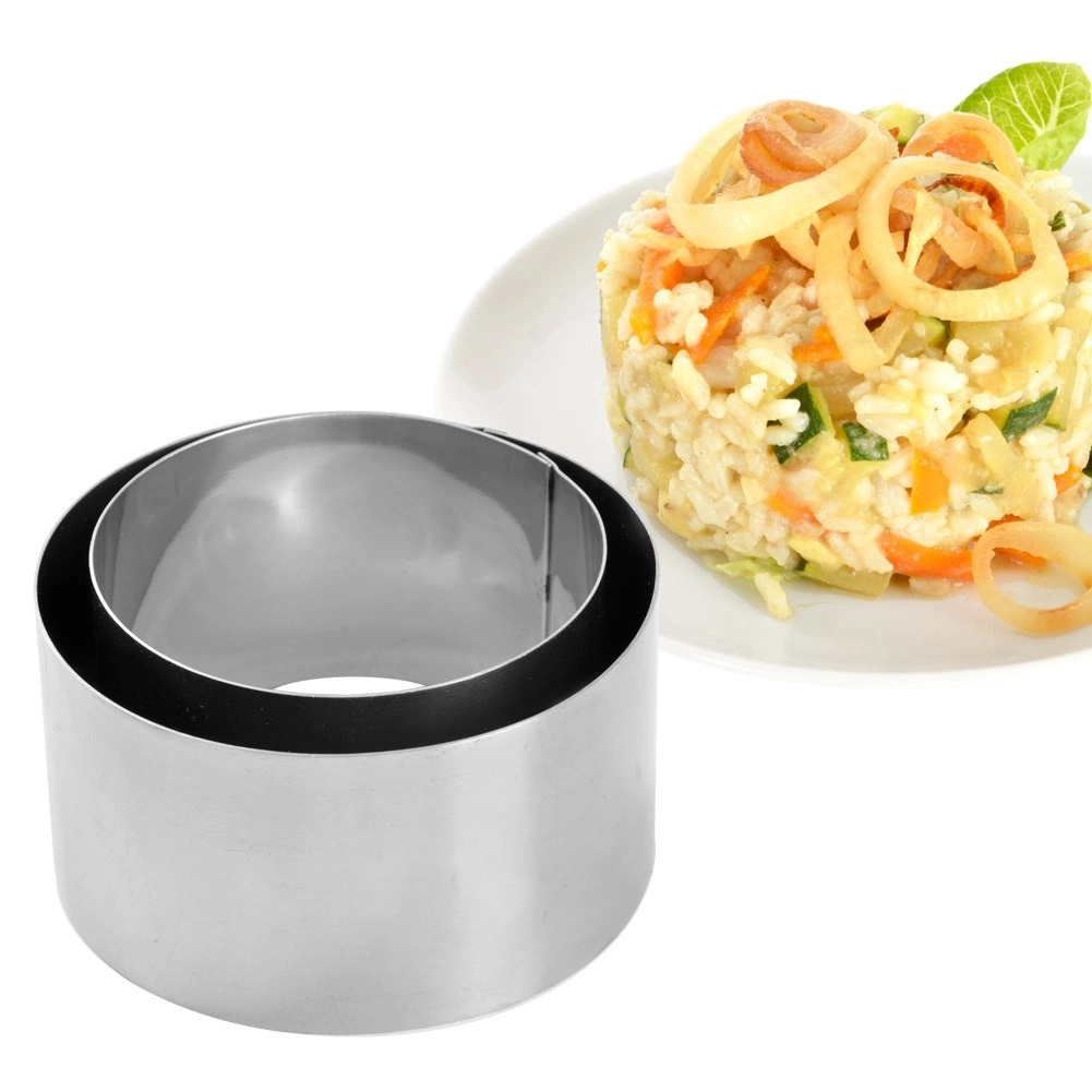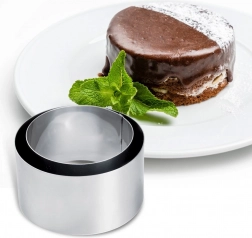 Ringe i rustfrit stål former desserter, salater og tilbehør til præcise cylindre med glat kant for en imponerende præsentation på tallerkenen.