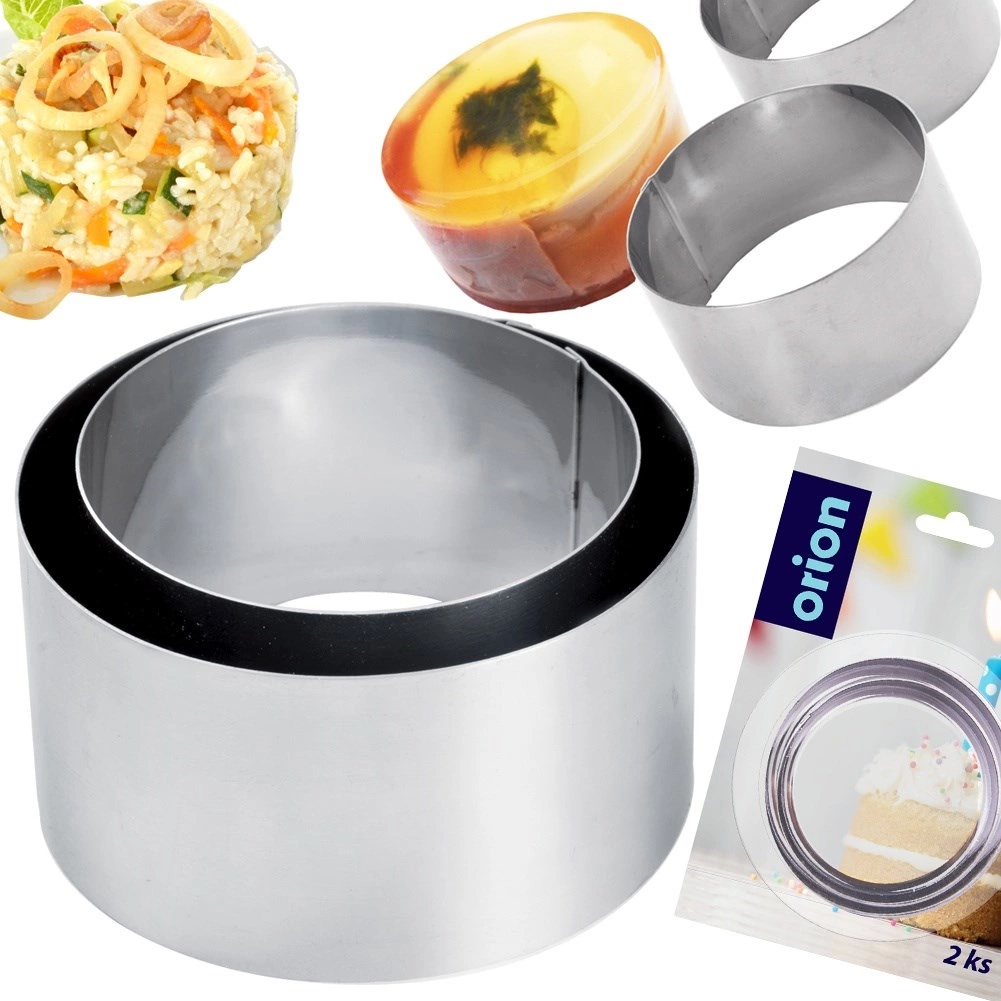 Sæt med to ringe i rustfrit stål er ideelt til tilberedning af små kager, tartelletter, lagdelte salater, ris, kartofler eller gelé. Det robuste rustfri stål sikrer lang holdbarhed, hygiejne og formstabilitet. Med to størrelser kan du skabe effektfuld portionering og plating som i et professionelt køkken.