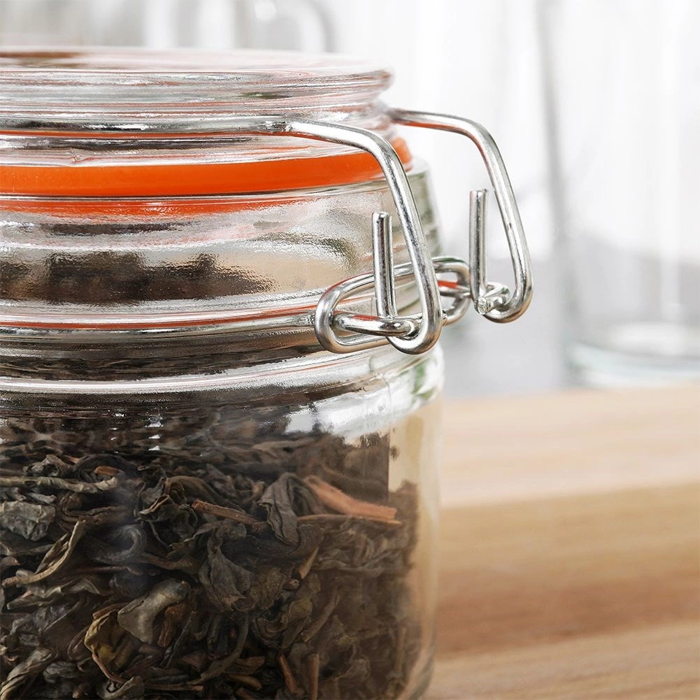 Denne stilfulde og holdbare krukke med patentlukning er et fremragende valg til daglig brug i køkkenet og som gaveemballage til hjemmelavede lækkerier. Opbevar krydderier, marmelader, honning, puré og små bær – alt sikkert og overskueligt takket være den helt tætte lukning.