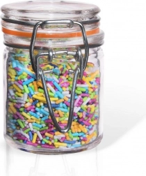 Den kompakte glaskrukke med patentlukning på 50 ml er ideel til krydderier, marmelader og små bær. Takket være den robuste glasbeholder, metalclipsen og den gummipakning forbliver indholdet friskt længere og beskyttet mod fugt. Et praktisk tilbehør til ethvert køkken, som ser stilfuldt ud og har alsidig anvendelse.