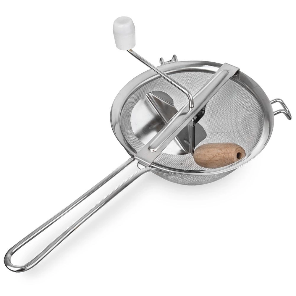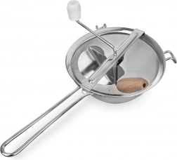 Praktisk og holdbar hjælper til madlavning i hverdagen. Sigtet i kvalitetsrustfrit stål udmærker sig ved stabil konstruktion, komfortabelt håndtag og kroge til sikker placering på skål eller gryde. Adskiller nemt frugtkød fra kerner og skræl og skaber en fin, ensartet puré.