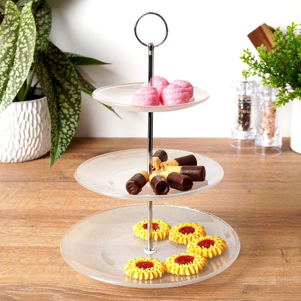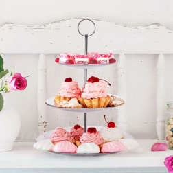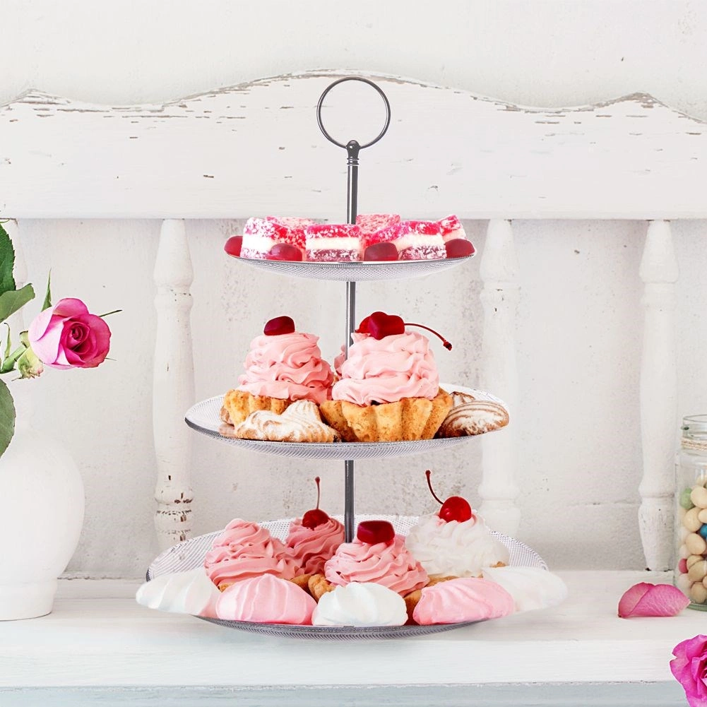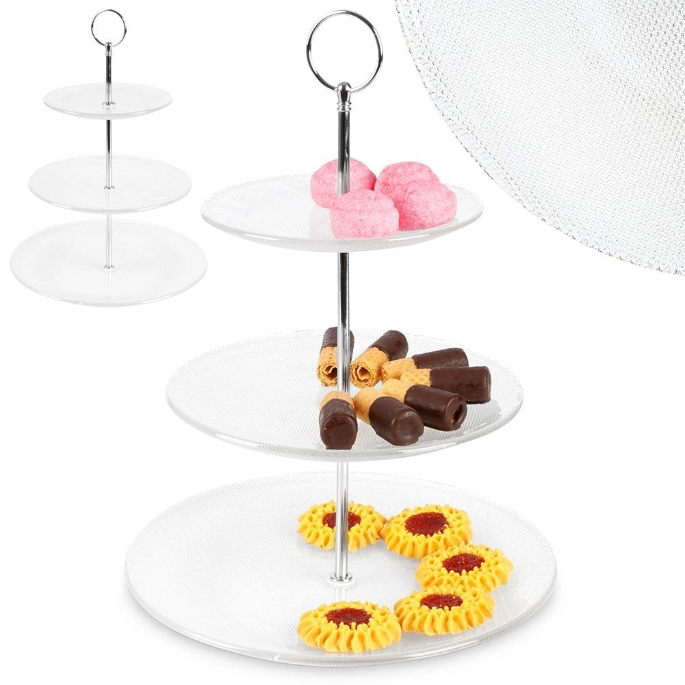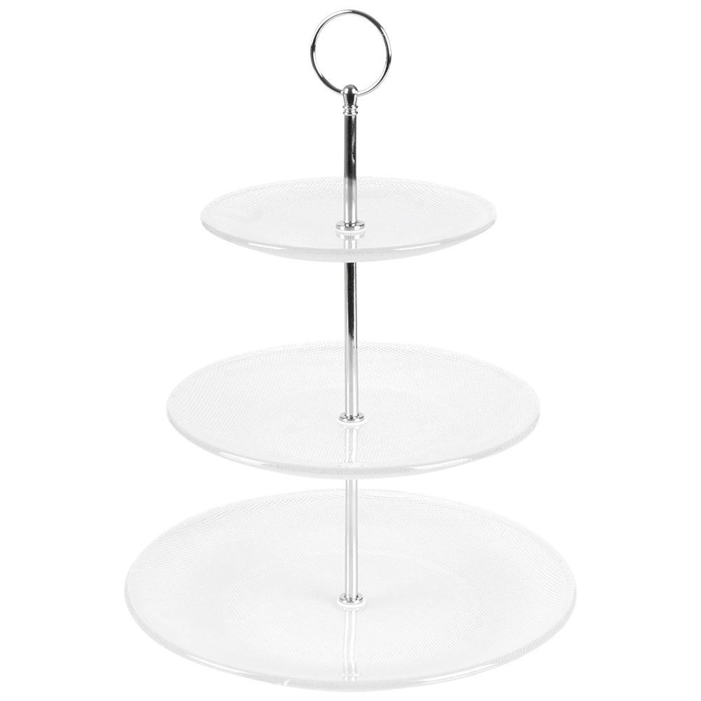 Glasetagere med tre niveauer er det perfekte valg til servering af cupcakes, småkager, desserter, frugt og salte kanapéer. De forskelligt store tallerkener muliggør overskuelige og imponerende arrangementer, som pynter på ethvert festbord, sweet bar eller buffet.