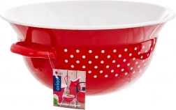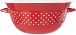 Denne kvalitets skål af emaljeret stål i rød med hvide prikker er en fremragende hjælper i ethvert køkken. Den giver en stor volumen på 9 l og praktiske håndtag for sikker transport. Velegnet til daglig madlavning, dejtilberedning, omrøring af ingredienser og stilfuld servering ved bordet.