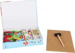 Dette kreative hammer-sæt med feer giver børn timevis af sjov skabende leg. Dele med forborede huller fastgøres let med søm på den kvalitetsrige korkplade og danner eventyrlige scener fulde af blomster, feer og svampe. Den praktiske træhammer er behagelig at holde om, og arbejdet er sikkert og intuitivt.