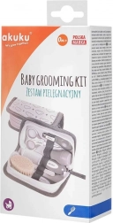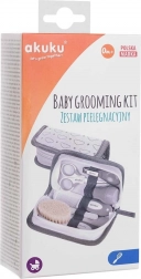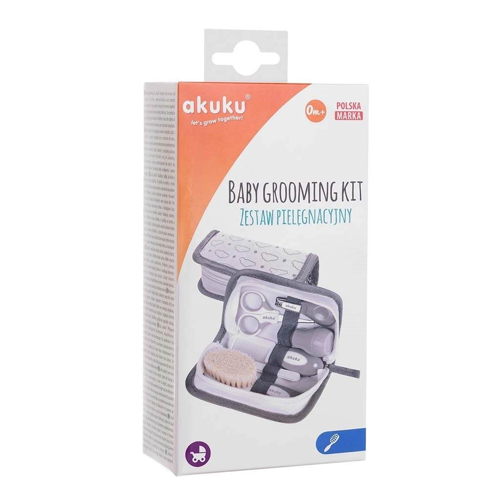 Det komplette sæt Akuku Hooligans gør den daglige pleje af din baby lettere fra de allerførste dage. Alle redskaber er designet med fokus på sikkerhed og komfort – saks med tynde metalblade og afrundede spidser for skånsom klipning, negleklipper og fil for en glat afslutning uden risiko for at rive huden. Børsten med bløde naturbørster plejer nænsomt den følsomme hovedbund, mens kammen med skridsikkert håndtag giver et sikkert greb.
