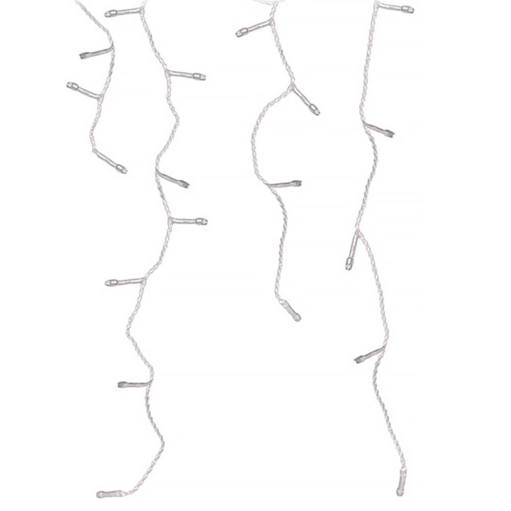 Gardinet har forskellige længder på de hængende strenge med en afstand på ca. 15 cm og lyser med konstant lys. Fra strømforsyningsadapteren går der et 3 m tilslutningskabel, hvilket gør placering og tilslutning til stikkontakt nem. Takket være IP44-beskyttelse er dekorationen vejrbestandig og dermed sikker til udendørs brug.
