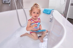 Den lette konstruktion flyder på vandet og er sikker til leg i badekarret og poolen. Børn kan nemt bladre og udforske farver og former.