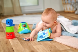 Det integrerede pivelydselement indbyder til at trykke, udvikler finmotorikken og lærer barnet årsag–virkning.