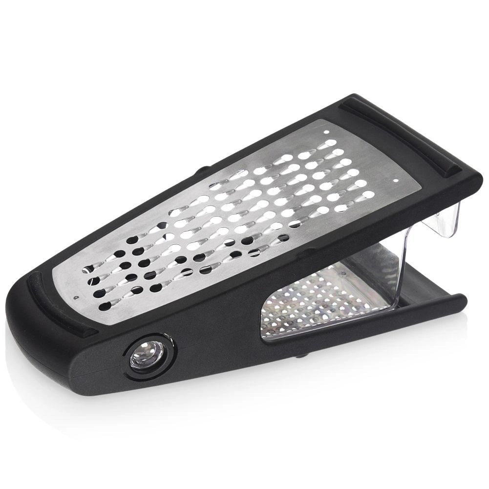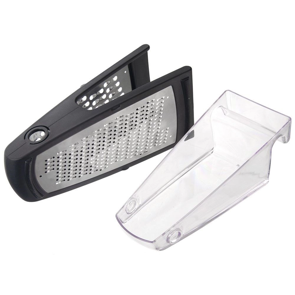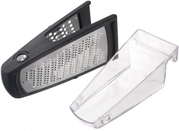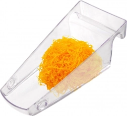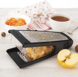 Den transparente, aftagelige beholder opfanger alt, hvad du river, og gør det let at hælde over uden rod på bordpladen.