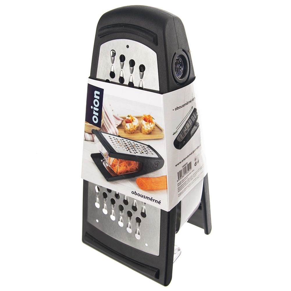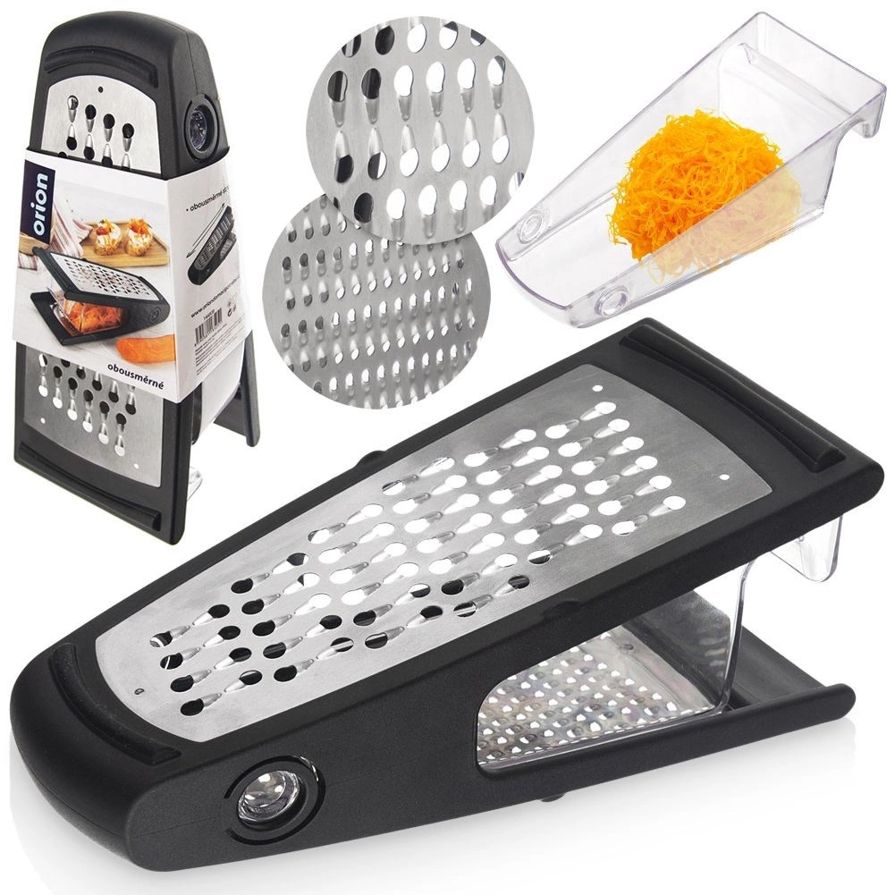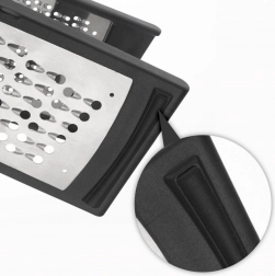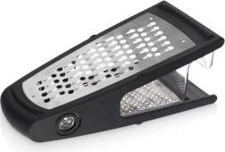 Universelt køkkenrivejern med aftagelig, transparent beholder, der forenkler forberedelsen og holder arbejdsfladen ren. To forskellige riveflader giver perfekte resultater ved rivning af grøntsager, frugt, oste, chokolade og krydderier. Stabilt, skridsikkert endestykke forhindrer, at rivejernet flytter sig under brug.